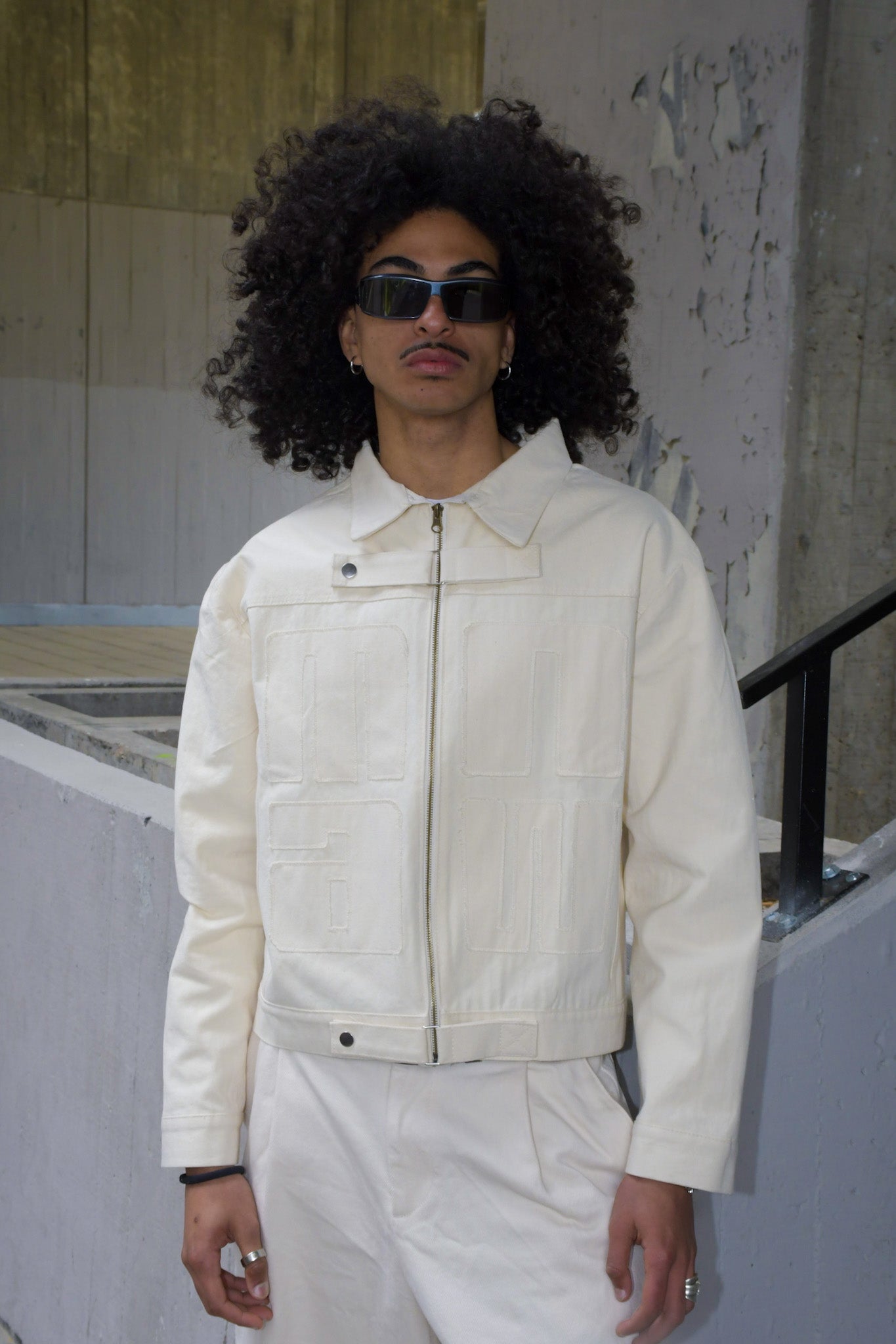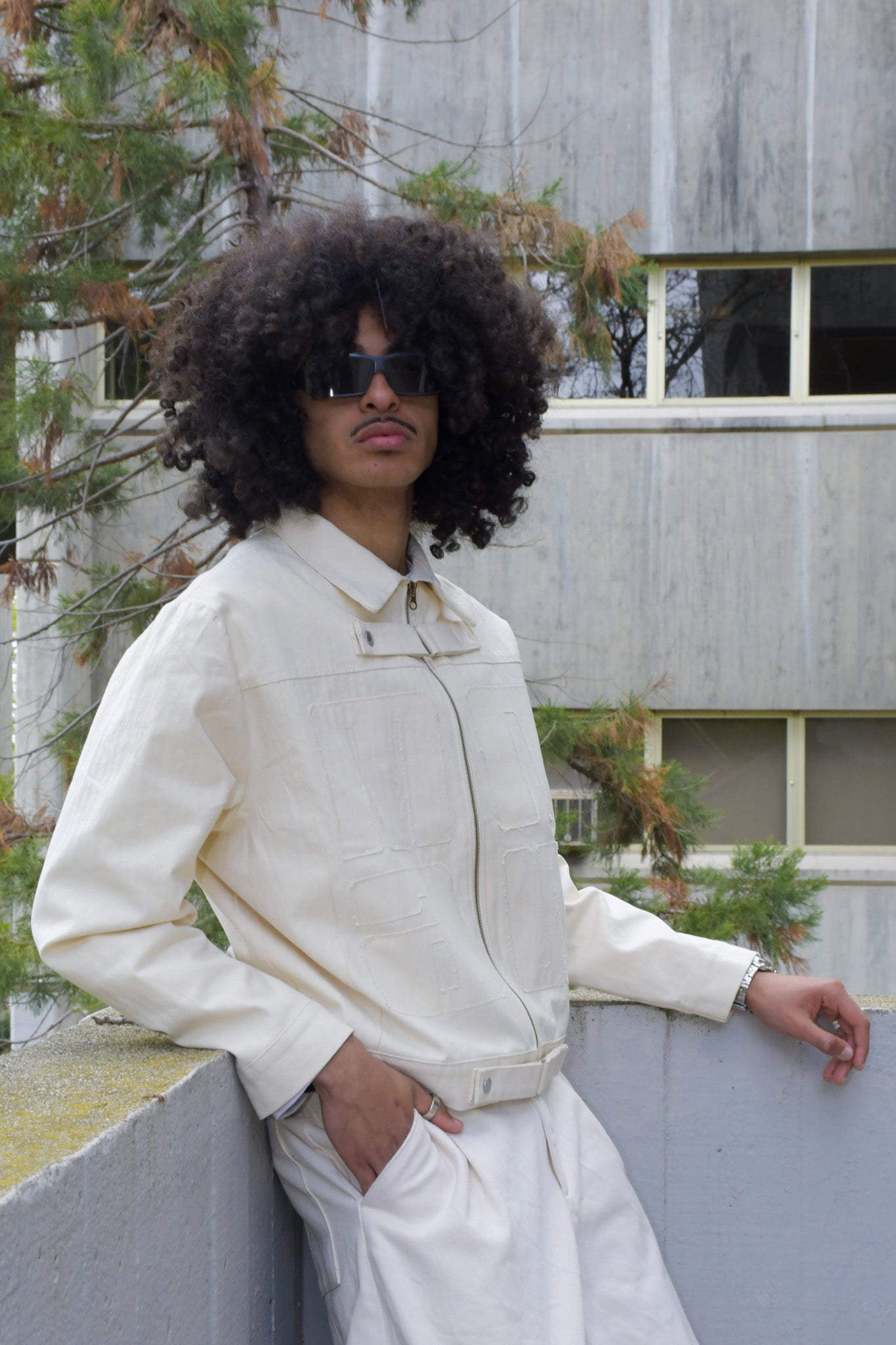 Hombros caídos estilo oversized y ajuste en cintura.